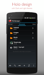 File Manager is a Holo-themed file manager and application explorer crafted for Android phones and tablets.