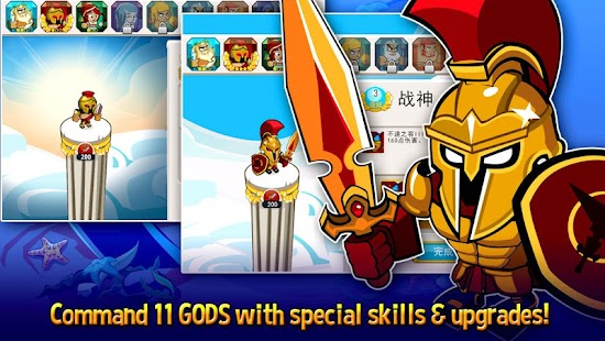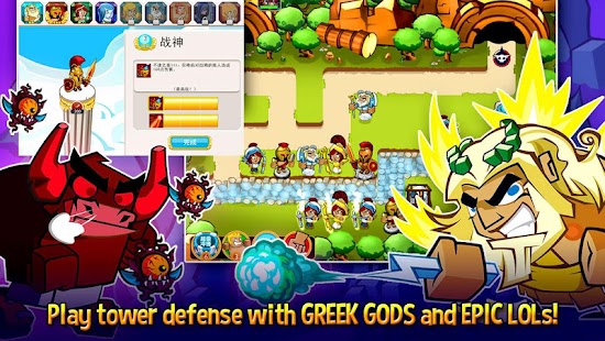 Play the action-packed defense game where you command the Greek gods themselves! Blast hordes of monsters with elemental magic, call legendary heroes to your aid, and summon your gods to wreak havoc across the battlefield!